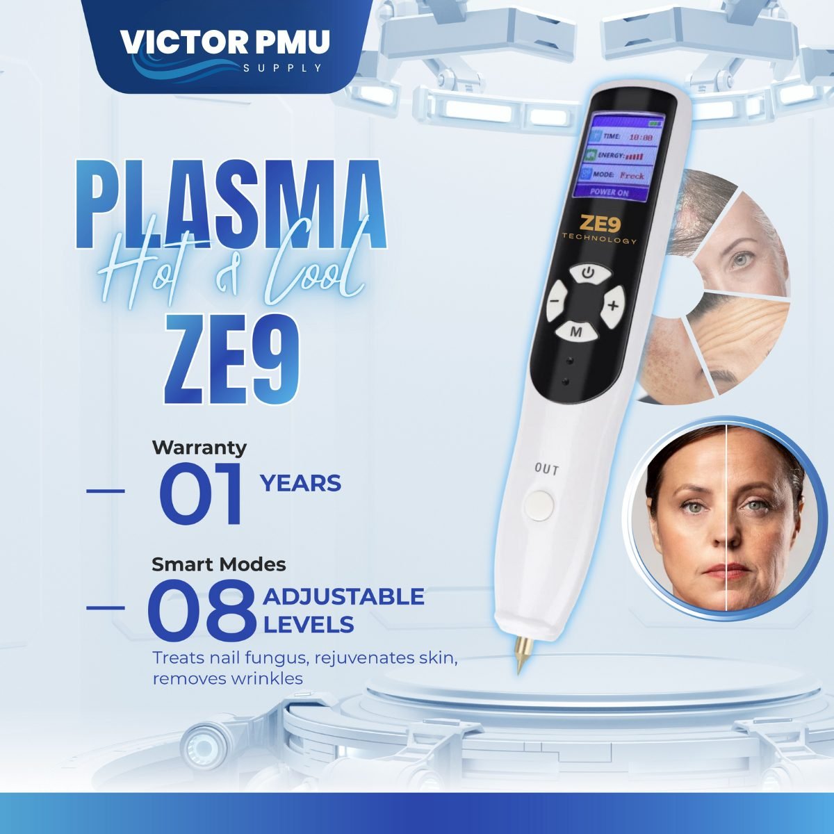 Plasma Hot & Cool ZE9 is a new-generation skin treatment device featuring dual Ozone & Plasma technology , designed for non-invasive disinfection, rejuvenation, and repair .